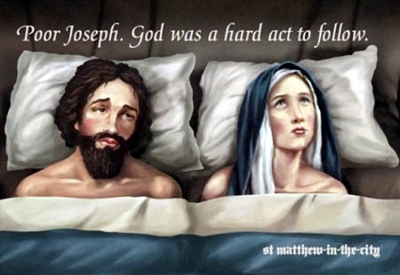Jaunzēlandes konservatīvo kristiešu sašutumu izsaucis kāds plakāts, kas izlikts pie Oklendas Svētā Mateja baznīcas un kurā jaunava Marija un Jāzeps attēloti nepārprotami kaili kopīgā gultā. Plakātā acīmredzami apbēdinātais Jāzeps guļ blakus Marijai, kura lūkojas debesīs, bet virs viņiem lasāms uzrakts: “Nabaga Jāzeps. Dievu nepārspēt.”