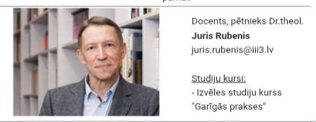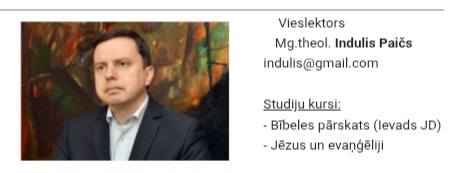 Saskaņā ar garīgi pastorālās mācību iestādes mājaslapā publicēto informāciju Mg.theol. Indulis Paičs pasniedz divus kursu – “Bībeles pārskats (Ievads Jaunajā Derībā)” un “Jēzus un evaņģēliji” un Dr.theol. Juris Rubenis vada izvēles studiju kurss “Garīgās prakses”.